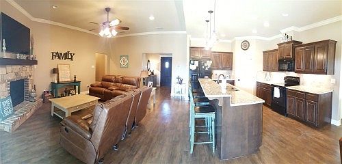 THIS ONE HAS IT ALL. BUILT IN 2014, YOU WILL FIND THIS 4/2/2 SITTING HIGH ON A HILL WITH BEAUTIFUL VIEWS ON OVER 5 ACRES. THIS RARE FIND IN UNION GROVE ISD FEATURES CROWN MOLDINGS, A CUSTOM FLOOR PLAN WITH A WONDERFUL MASTER RETREAT, AN OPEN KITCHEN WITH DARK CABINETS AND BEAUTIFUL GRANITE, A 4TH BEDROOM OR HOME OFFICE, LARGE CLOSETS AND MORE! OUTSIDE YOU WILL FIND AND A 1200 SQ FT INSULATED WORKSHOP AND VIEWS FROM THE FRONT AND THE BACK YARD THAT ARE ABSOLUTELY AMAZING TO WATCH THE SUNRISE AND THE SUNSET!
