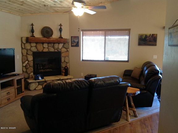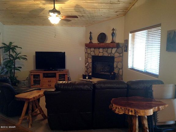 Here is your opportunity to own a cabin in The Heights at Bison Ridge. This affordable mountain vacation home with open Great Room floor plan is a perfect weekend getaway. Vaulted ceiing with beautiful T&G aspen planks, rocked fireplace and mostly furnished cabin is ready for you! Enjoy the views from the large covered deck. Detached garage, too, to house all the toys. Near national forest and Fool Hollow Lake. Just minutes from restaurants, shopping, movies in Show Low.
