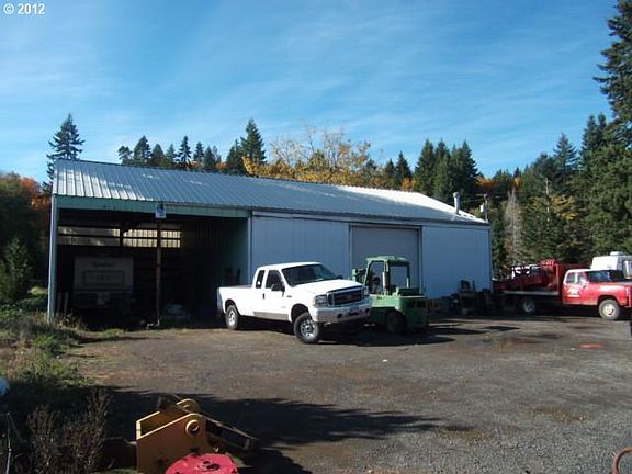 1.2 acres with 1 acre zoned as Commercial and .20 as residential (check with city to confirm records)Large working shop with (2) 20 foot bay doors drivethru, 3 bays inside and 2 bay covered out, indoor pit and 2 lofts for additional storage, bathroom. Lots of area for parking. Right off Hwy 47 on North end of Vernonia. 2nd building is 25 x 25 with 3 bays, loft and 20 foot door.