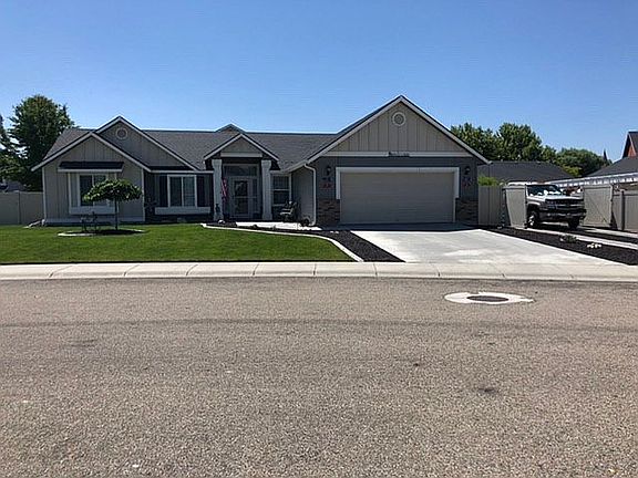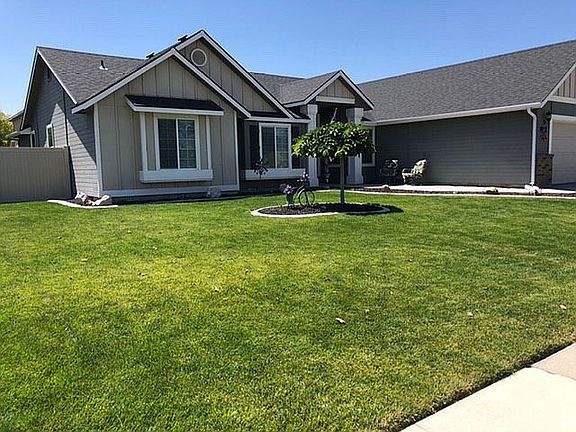 For Sale by Owner -- Please contact Debbi at 208-403-7032. Willing to work with buyer’s realtor. Pride of ownership shows in this beautiful home in Crimson Point subdivision which boasts many upgrades, including oil rubbed bronze fixtures, Sun Valley hand textured walls, upgraded trim, bull nose corners, corner gas fireplace, and ceiling fans in both the great room and master. The home features vaulted ceilings in the great room and kitchen. The kitchen features a large island, breakfast nook, stand-up bar, and brand new granite countertops, under mount sink, and full tile backsplash. Separate formal dining area is perfect for family and friends get togethers. The spacious master suite includes a large walk-in, dual showerhead shower, separate soaker tub, dual sink vanity, and large walk-in closet. The separate guest suite bath has a new granite countertop, under mount sink, and tile backsplash. Stamped concrete RV strips lead to a large, 68-foot RV pad located behind the security fence. Large, beautiful stamped concrete patio with patio cover over the portion of the patio outside of the kitchen/living room area. The backyard includes a 10x16-foot shed, a mature peach tree, and several garden planter boxes. Workbench and storage built-ins line both sides of the extra-long garage.