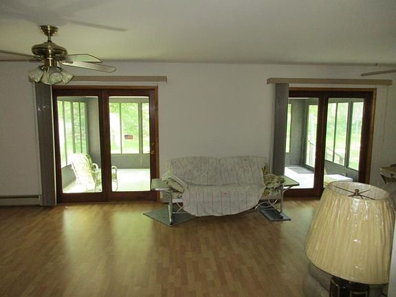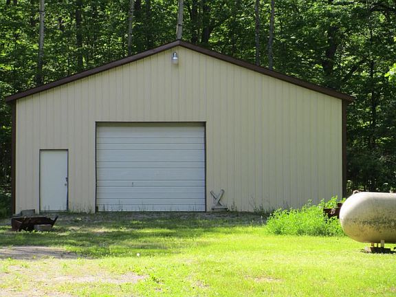 10 acres of mature trees surrounds this 3 bedroom, 2 1/2 bath home, which features a full dry basement, 3 seasons room overlooking the woods, a 36 X56 Pole Barn with cement floor and electricity, a wood burning insert in the fireplace, finished 2 car garage, roof new is 2009. Spacious house has 1900 sq. ft. with the master suite having doors to the outside, full bath with garden tub and shower, 2 walk in closets, double vanity sinks. Eat in kitchen has an island, custom made blinds, stove and dishwasher. Oversized laundry room comes with the washer and dryer, laundry tub, 1/2 bath and closet for storage. Great location, excellent hunting, and at a terrific price!!!