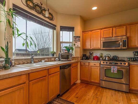 Quality 2006 home 1924 sq ft. 4 beds +den with master on main floor. 2.5 baths,18' vaulted ceiling in living room with gas fireplace and 8' ceilings throughout. Tile counters in the kitchen, bathrooms and utility floors. Beautiful wood flooring in kitchen and dining room and all stainless appliances included. Home has central Heat, A/C. Lawn installed with 3 zone automated sprinkler system, two exposed aggregate patios off dining and Master, fully fenced with RV-boat-trailer parking area behind double gate.