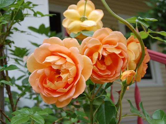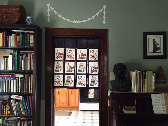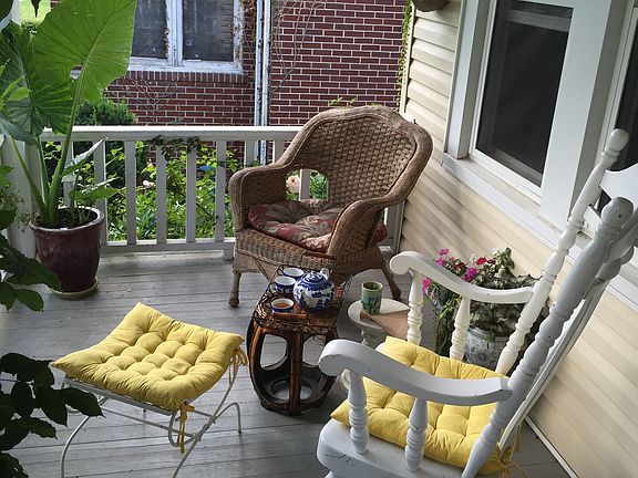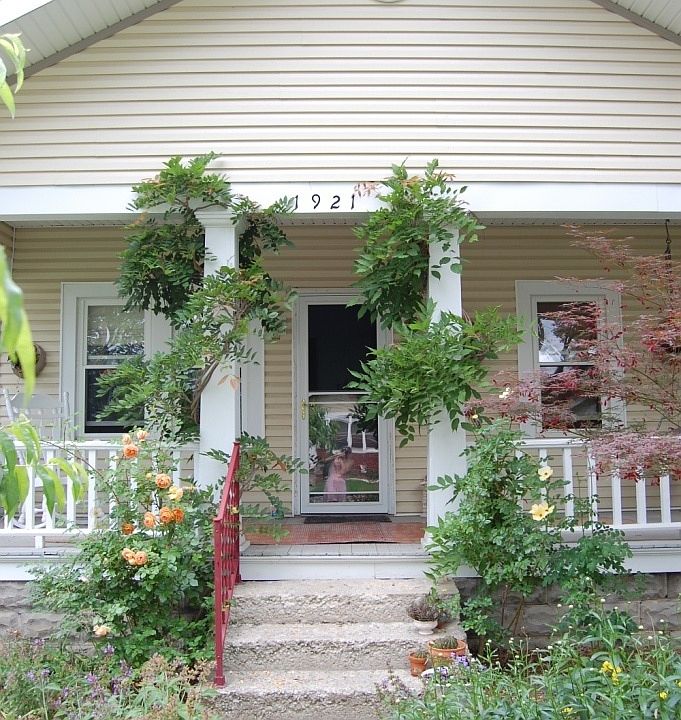 This charming craftsman bungalow is harbored by a quiet tree lined street. Wisteria and Pat Austen roses invite visitors up the lavender lined path under the peach tree to the original large craftsman porch, buttercream siding trimmed in white, red front door. High ceilings in the natural wood trimmed interior allowed for recent addition of fans in a style and patina suited to the original home design. We love this house!