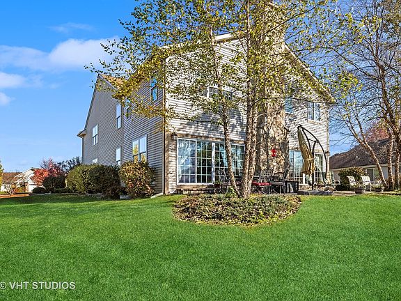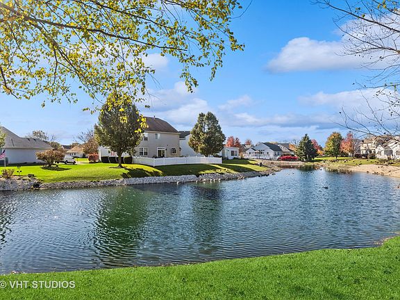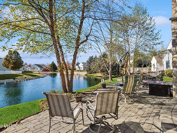 Discover the joy of luxury living in Olde Mill Ponds with this exclusive custom home, boasting picturesque views and tranquil waterways. This expansive waterfront residence unfolds across 14 rooms, potentially accommodating up to 6 bedrooms. The grand open floor plan seamlessly connects each space, leading to an awe-inspiring primary suite adorned with a charming sitting room, a stone fireplace, and an expansive walk-in closet and a generous dressing area. Spanning 5347 square feet across three levels, this home is a masterpiece of craftsmanship. Custom hardwood floors and woodwork grace every corner, complemented by two captivating stone fireplaces. The high-end stainless-steel appliances in the kitchen enhance both style and functionality. The family room beckons with double sliders, a pool table, and a bar, opening up to a wide patio overlooking the serene pond. Venture into the basement to discover an additional three bedrooms, a sauna, and exercise room. A partially finished kitchenette area adds a touch of versatility, perfect for accommodating children or guests. There is also roughed-in plumbing for a future bathroom in the basement area. Beyond the home's boundaries lies the beauty of nature, with your own pond providing a peaceful backdrop. Proximity to the community park district athletic fields adds a touch of convenience. For eligible veterans, an assumable mortgage at 4.5% is made available through USAA. Don't miss the chance to experience the splendor of this remarkable home - a harmonious blend of elegance, comfort, and natural beauty. The listing is being offered as-is due to owner moving out of area.