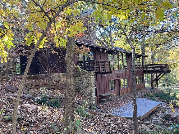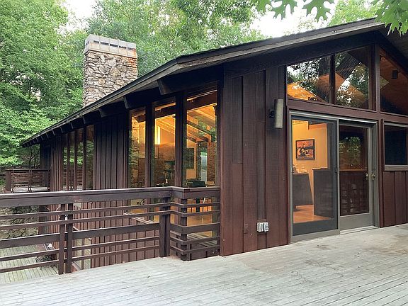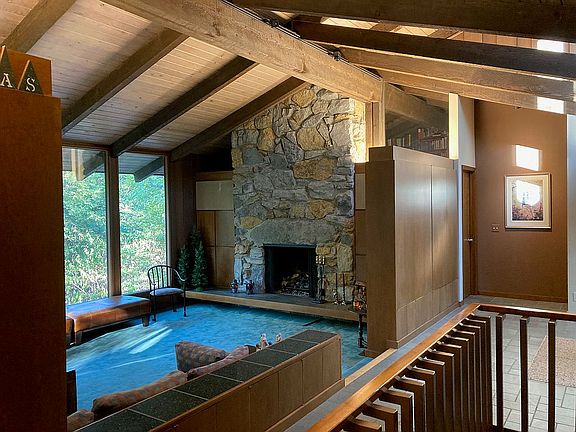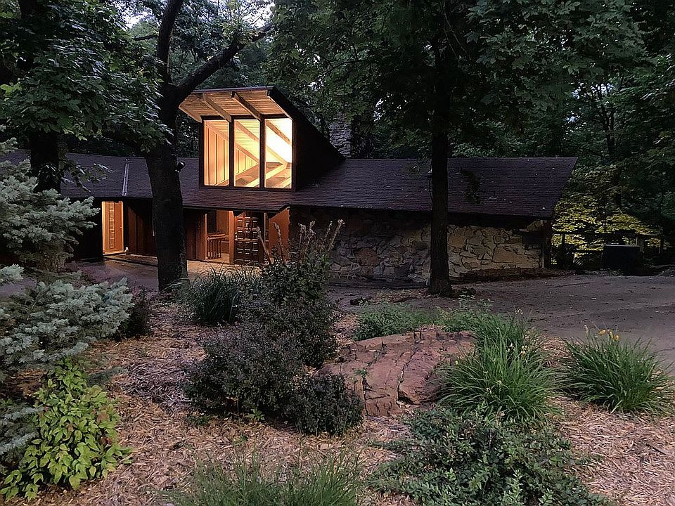Mid-Century Modern residence designed by architect Thomas McCrory. Built in 1966; restored and upgraded in 1989. Double Lot slopes into secluded back yard adjoining mature woods. Exterior surfaces are board and batten cedar and limestone with hail resistant architectural composition shingle roof. Upper level interior features include an exposed structural beam cathedral ceiling with 6-inch tongue and groove decking. Beams and decking extend beyond windows and support the roof overhang. Entryway window wall extends 14-feet above slate floor. Interior walls are board and batten cedar, gypsum board and limestone. Sunken living room includes built in cabinetry and massive limestone fireplace. Orientation of residence on lot provides remarkable privacy and views into woods through large double pane windows. Beautiful elevated cedar deck with built in seating and natural gas grill rebuilt in 2022. Second master suite/library on upper level includes cedar balcony. Lower level includes master suite and private large deck overlooking landscaped back yard descending to woods. Large double pane windows provide forest views and opportunities to view deer and other wildlife.