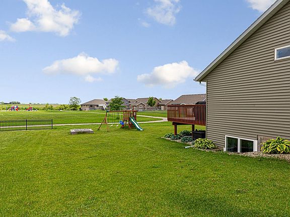 Introducing the home you've been dreaming of! This stunning 4-bed, 3-bath rambler offers all the amenities on the main level. With an open concept, spacious master bedroom with bath and walk-in closet, inviting eat-in kitchen, main level laundry, and a cozy fireplace, it's designed for comfortable living. The lower level features a large family room with updated LVP flooring, 2 bedrooms with newer carpet, a stylish bathroom with a tiled shower, and ample storage space. Outside, the home boasts maintenance-free siding, a 3-stall garage, beautiful landscaping, and a spacious deck with scenic views of walking trails, parks, and ponds. Conveniently located with easy access to parks, schools, amenities, and major highways, this newer build has it all. Don't miss out - schedule a showing today!