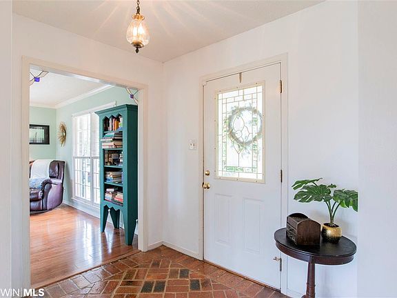 Charming Colonial in Creekwood! Fabulous 4 bedroom/2.5 bath home convenient to Cottage Hill Christian and zoned for Baker High School. This home features fresh paint, beautiful split brick and wood flooring, and new carpet in all the bedrooms. Downstairs, you'll find the first floor master, with en-suite bath with updated countertops, an updated ½ bath, and a dining area with picturesque bay window. Additionally, you'll find the kitchen with breakfast bar, painted cabinets and updated pulls, stainless steel appliances, large pantry, and laundry room. The oversized living room, also downstairs, is bright, with lots of windows, a wood burning fireplace and french doors leading outside to your private back yard. Upstairs you'll find three additional bedrooms, one large enough to be an upstairs master or additional living room/media room, and your other full bath. There's also an outside balcony from the upstairs landing. Outside you'll find a brick patio, large fenced in back yard, 2-car garage, and fresh sod in the front yard. The sellers recently had eight pine trees removed from the property. Property also features an advanced home security system with cameras.