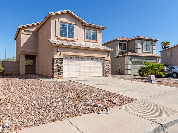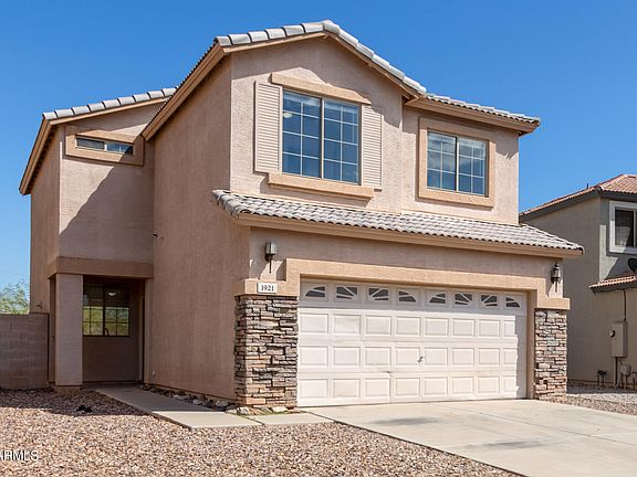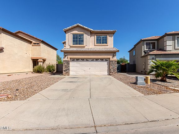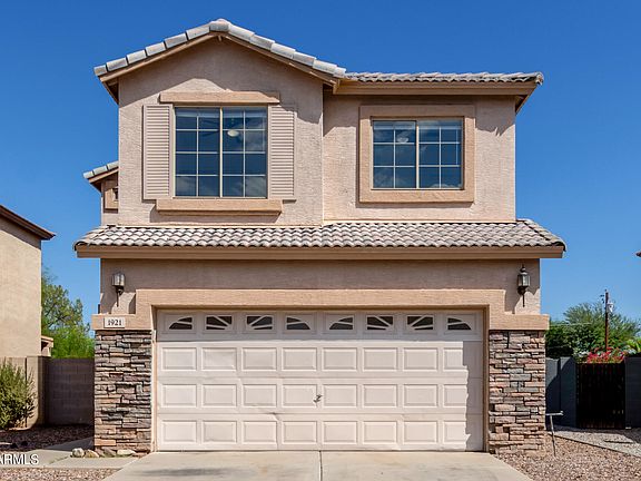 This lovely two-story gem, featuring elegant stone accents and a 2-car garage with an extended driveway, is now available! Step into an immaculate interior with soaring ceilings, freshly painted walls, tile flooring, and abundant natural light that floods the welcoming living room. The eat-in kitchen is functional and inviting, with ample counter space, wood cabinetry, and a convenient breakfast bar—perfect for quick or casual meals. Upstairs, you'll find three carpeted bedrooms, including the primary retreat that comes with a pristine private bathroom and a mirrored closet door. The large backyard is a blank canvas, boasting a covered patio and pavers, offering endless potential to create your dream outdoor oasis. Hurry! This adorable abode is move-in ready! Appliance package included.