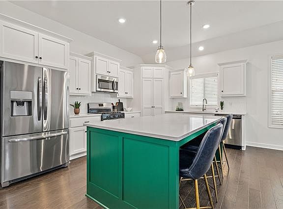 - Ceiling Fan(s), Custom Cabinets, Kitchen Island, Painted Cabinets, Pantry, Smart Thermostat, Stained Cabinets, Vaulted Ceiling(s)