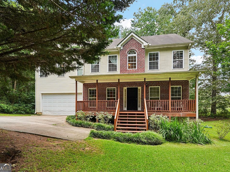 Welcome to this spacious and beautifully maintained 4-bedroom, 2.5-bath home situated on a quiet cul-de-sac lot-perfectly located near the Atlanta Airport, shopping, and restaurants. From the inviting rocking chair front porch with charming brick accents to the large backyard, this home offers comfort, style, and functionality. Step inside to find LVP flooring throughout the main level, a family room with cozy fireplace, a formal dining room, and a separate office or flex space-ideal for working from home or a playroom. The kitchen is well-equipped with stainless steel appliances, solid surface countertops, a breakfast bar, and a sunny eat-in breakfast area. Upstairs, retreat to the oversized primary suite featuring a separate shower and garden tub, double vanities, and a generous walk-in closet. Three additional bedrooms provide plenty of room for family, guests, or hobbies. Additional highlights include a two-car attached garage, ample storage, and a private, level backyard-perfect for entertaining or relaxing outdoors. Don't miss your chance to own this move-in ready gem in a convenient location with a neighborhood feel!