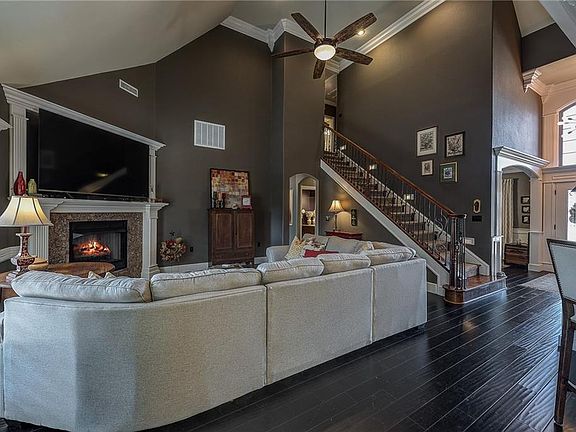Stunning 4 bed, 2.5 bath home in the gorgeous Tuscan Heights neighborhood. You will find outstanding details around every corner, from the coffered and intricate trey ceilings to the hand scraped hardwoods and creamy woodwork throughout. The flowing floor-plan leads guests from the large living area to the eat-in kitchen with oak cabinetry, double ovens, electric cook-top and breakfast bar, then into the formal dining room for an evening of entertainment. The master suite provides a large walk thru closet connected to the laundry room for your convenience. Upstairs you will enjoy a large bonus room for game nights or easily set it up as a 4th bedroom for your guests. Step outside onto the lovely custom covered patio with a cozy corner fireplace and a fenced in back yard, including an extra storage shed. This home is centrally located under 2 miles from I-49 allowing a quick 15 mile drive to both Downtown Bentonville and Fayetteville.