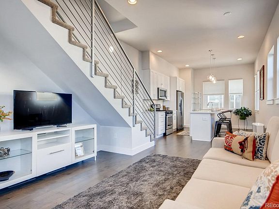 New carpet installed throughout in 2024 and new hardware in the kitchen. Light & bright, with lots of windows, modern, end unit 2018 townhome in the Sunnyside neighborhood. Stunning rooftop city views for entertaining and personal enjoyment. 10 ft+ ceilings on each level and offers tons of light. Open concept & open layout. Flex space for an office. Kitchen has gas range cooking with quartz counter-tops, stainless steel appliances and bar seating. Window treatments installed in bedrooms, kitchen and at main entrance. Whirlpool washer/dryer located with the bedrooms on the second level. 12'4" x 14'1" master bedroom will easily fit a king bed and has a spacious walk-in closet with double vanity bath attached. Second bedroom is also large enough to fit a king bed and has abundant closet space with a full bath next door. 548 sqft rooftop deck. Oversized 1-car garage leaves plenty of space to store all of your camping/skiing gear and bicycles. Central AC. Tankless hot water heater. Easy street parking too. Abundant closet and storage space has been a favorite feature of the current owners. Close to 52/44/19 bus lines, 41st/Fox light rail station and I-70/I-25 access. Walk to Radiator, Monkey Barrel, Cherry Bean and Bacon Social or take a 6 minute bike ride to the great restaurant/bar scene in LoHi. Renter pays for electric and other utilities. No smoking allowed. 12 month lease. Open to rent after 7/15/25. Pets considered with deposit and pet rent.