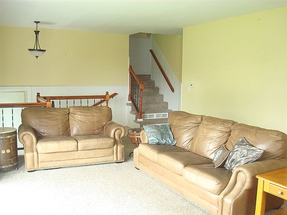 Completely updated Tri -level! .92 acres of land overlooking neighbor's private pond. Within the last 5 years: new kitchen cabinets, counter-tops, flooring and stainless appliances. Both bathrooms have new ceramic tile surrounding shower/tub combo. Roof, windows, siding new in 2010. Bedrooms all with refinished hardwood large closets. Upstairs hall lined with cupboards and closets for lots of storage. Beautiful great room with new carpet overlooks amazing back yard and pond with floor to ceiling windows. Lower level has new interior French drain and sump pump, all new carpet and drywall and door to outdoor patio. Large 10x8 mud room from the 2 car garage with new garage door opener.