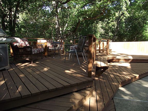 3 bedroom, 2 1/2 baths, recently remodeled. UNIQUE location on 2 wooded lots - gives country atmosphere in the heart of Edmond. Recent updates: 6 ft Cedar fense, Anderson window, wood/tile floors, 2 french doors, water heater, Zoned heating/cooling Rheem added, Silestone countertops, New stainless fridge, move in ready. Top quality replacements done on all fixtures, kitchen/baths remodeled, large master bedroom with fireplace, fireplace in living room. Recent painting, new attic insulation. Everything that could be fixed, repaired was fixed/repaired. the court records show sq feet at 1740 something. there are 3 not 2 bathrooms, and the previous owner expanded one bedroom which fits a queen bed, so i am guessing it is certainly over the 1800 sq foot. You can also put a queen in the smallest bedroom but i would probably recommed a full to provide more space.