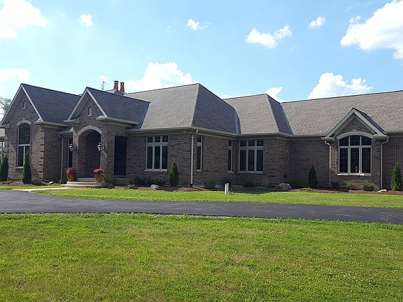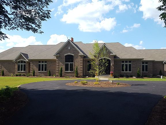 Seclusion without sacrifice! Upscale country living at its finest is what you will find with this 10 acre estate. This sprawling all brick 6100 sq ft ranch, has just about every amenity you can imagine. From the massive incredibly equipped gourmet kitchen with extra large eating area to the fully decked out 52' x 26' 4+ car garage with epoxy floors, custom cabinets and even a dog shower... it is all here! High end finishes throughout. 10' ceilings and 5' wide hallways are complimented beautifully by the transom topped Pella windows and 8' oak doors throughout. Heavy fluted solid oak casings and tall base moldings highlight the natural stone and hardwood flooring. Every bedroom has it's own private bathroom with heated floor and walk in closet. There are vaulted ceilings in the great room and theater room, a coffered oak ceiling in the stunning home office and tray ceilings in the master bedroom and formal dinning room. A sun room, butler's pantry and large craft room complete the main level. Now if 6100 sq ft isn't enough space for you, the immense, high ceiling daylight basement with a natural stone fireplace, is just begging to be finished. This partially wooded estate property includes the ultimate 28' x 66' hobby barn with 10' high doors. It is heated, insulated and fully finished with a high ceiling, storage loft, custom cabinets, 600 amp service, hot and cold running water and over sized insulated overhead doors. A brand new 600 ft asphalt driveway takes you past a second 24' x 37' storage barn to the home hidden midway on the parcel. Plenty of space for horses or other animals and there's even ATV trails for the kids. It is a 5 minute drive to the Metra Train in downtown Harvard, 15 minutes to Woodstock Square and 25 minutes north to Lake Geneva. This is a rare opportunity to acquire a home of this high quality for half of what it would cost to construct. The property is in the Conservation Stewardship Program that helps with taxes. Take a look at the interactive virtual tour.