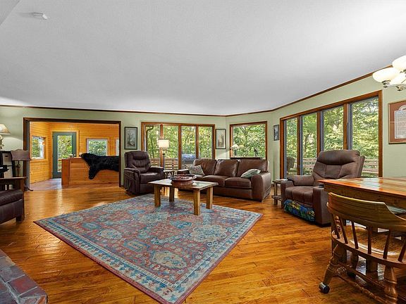 Do not miss your opportunity to own this 11 acre wooded property steps from Carlyle Lake! Everything has been remodeled: hand scraped Cherry wood floors throughout the main level, slate tiles in finished basement. Old screen porch enclosed for an amazing dining room! Granite counters in updated kitchen w/stainless appliances. Main level laundry doubles as walk-in pantry. Large wood-burning fireplace on main level adds to the ambiance, with gas stove in basement for those snowy days. 1 acre fenced, preventative termite treatment performed, new covered gutters, whole home generator, newer outbuilding, new roof (2018), new cedar siding (2019), new upper and lower decks (2020) brand new HVAC (2023). Bonus room in basement could be 4th, non-conforming bedroom (no egress window) with finished walk-out basement plus extra storage. Plumbed for future wet bar (behind old TV) Lots of natural light to view the wildlife, with upper deck and covered patio for enjoying this amazing private property!