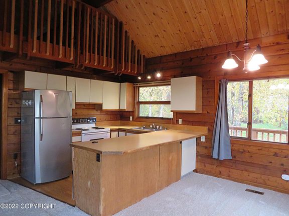 Alaskan chalet with mountain view. Sun drenched corner lot with fenced in yard and a large deck. Open kitchen, cathedral ceilings and new carpet. Loft master bedroom with private bath and huge family room. Owner providing Home Warranty. Hurry on This one!