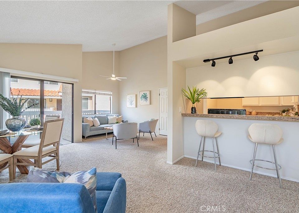 Nestled in the serene, gated community of Pier Pointe, this lovingly maintained condo offers the perfect blend of comfort and convenience. The spacious layout features two large bedrooms, two full bathrooms, and vaulted ceilings throughout, with bonus spaces above the second bedroom and kitchen. Considered one of the most desirable locations within Pier Pointe, this end unit faces a peaceful grassy area, providing a quiet and tranquil setting away from busy streets and loud gates. This unit also includes an extra reserved parking spot directly in front of its private garage. Just a short bike ride to the beach, this condo is ideal for those looking to enjoy the coastal lifestyle. The HOA includes high-speed internet, water, trash, and sewage services, as well as access to laundry facilities, a community pool, and professional landscaping.