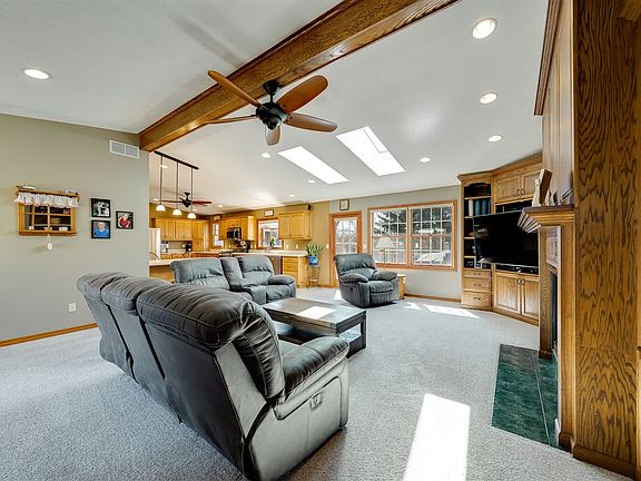 Nestled within the landscapes of the Award-Winning Tri-Valley School District, this remarkable steel-sided ranch home epitomizes comfort, luxury, and functionality. Two primary bedrooms, each boasting en-suites, provide unparalleled comfort and privacy, complemented by two additional bedrooms. The heart of this home lies in its expansive kitchen, a culinary haven equipped with custom Amish cabinets, sleek solid-surface countertops, a generous island, a spacious walk-in pantry, and stainless-steel appliances, ensuring both style and functionality. Enjoy the inviting main floor family room, adorned with custom built-ins, inviting skylights, and a gas fireplace, offering a cozy retreat for relaxation and entertainment. Gather for memorable family dinners in the dining room, adorned with hardwood floors, setting the stage for cherished moments and lively conversations. The finished basement offers versatility with a sizable craft room, perfect for unleashing creativity, or easily adaptable as a workout space or playroom. The adjoining family room boasts a well-appointed wet bar and a pool table, seamlessly extending entertainment options for every occasion. Step outside to the expansive backyard oasis, where endless summer days are enjoyed in the refreshing pool, while the hot tub beckons year-round relaxation. The double-wide walkout door from the basement family room effortlessly connects indoor and outdoor spaces, fostering a seamless flow for entertaining and leisure. A 4-zone system ensures personalized comfort for everyone, supported by a new Furnace and Air Conditioner installed in July 2021, providing optimal climate control throughout the seasons. The garage boasts modern conveniences with a new 18' garage door installed in 2019, complemented by an epoxied garage floor added in 2022. Additional Info: Washer and Dryer (electric hook up) do not stay. Storage room freezer does not stay. Metal shelving unit in storage room does not stay. Reverse Osmosis Water system stays. Microwave, Range, Dishwasher, and Refrigerator all stay. Disclaimer: All information provided is deemed accurate but not warranted, ensuring transparency and trust for prospective buyers.