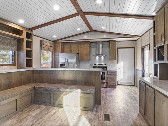Welcome to this charming 3-bedroom, 2-bathroom mobile home located at 19218 Mclin Road. This property is available for rent and offers a cozy and inviting atmosphere. As you step inside, you'll immediately notice the custom shiplap accent walls that add a touch of character to the living space. The open floor plan creates a seamless flow between the living room, dining area, and kitchen, making it perfect for entertaining guests or spending quality time with family. The dining room features a built-in hutch and an L-shaped bench seating arrangement around the table, providing a comfortable and stylish setting for meals. The vaulted and beamed ceiling in the living room adds an extra touch of elegance and spaciousness. Vinyl flooring throughout the house not only enhances its aesthetic appeal but also makes maintenance a breeze. With a split floor plan, this home offers privacy and convenience for everyone in the household. Ample closet space ensures that you'll have plenty of room for storage, keeping your belongings organized and easily accessible. The property sits on a generous 0.3-acre lot, providing ample outdoor space for relaxation or outdoor activities. Conveniently located with easy access to nearby amenities, this house offers both comfort and convenience. Don't miss out on the opportunity to make this lovely property your next home. Schedule a showing today!