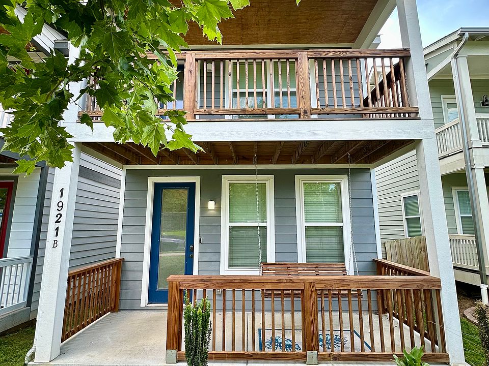 Bright, modern 3-bedroom home in Nashville's artsy Buchanan Arts District. This location has great highway access. Built in 2020, this home offers high ceilings, hardwood floors, and a kitchen with granite countertops and stainless-steel appliances. The primary suite faces east with two dormer windows in a vaulted ceiling, nice morning light. It includes a private bath, walk-in closet, and private balcony. Two additional top floor bedrooms share a full bath. The main floor includes a convenient laundry closet with washer and dryer, next to a bathroom for guests. Additional features include 2GB Google Fiber internet, outdoor security cameras, a fully fenced backyard, covered carport for two vehicles, and a porch swing on the front patio. Nestled on a quiet street, this home provides both tranquility and city convenience. Utilities not included in rent. No smoking. Pets will be considered on a case by case basis. Background and credit check required. 12 month lease that transitions to month-to-month. No smoking.