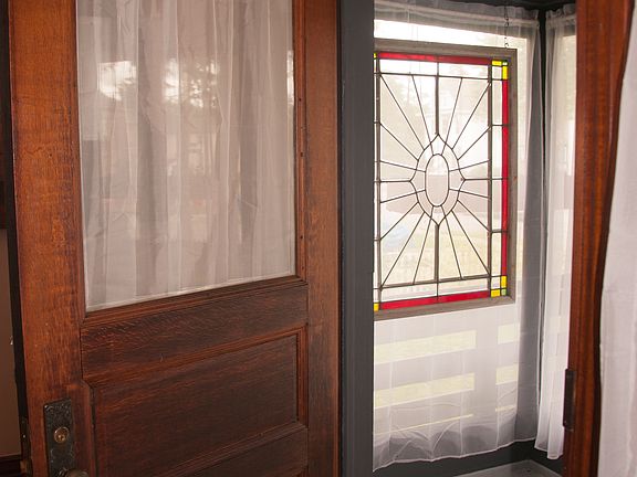 Beautiful completely Victorian home. 4-5 bedrooms, 3 full baths, full dry basement, finished 3rd floor attic, double garage, fenced in large yard w/trees, circular driveway, 2 fireplaces, formal dining room, extra large 13 x 30 great room. Beautiful hardwood floors just refinished. 6 bay windows with beveled clear leaded glass, gorgeous front entry w/oak carved staircase. Spacious new 12 x 12 kitchen. Easily converted to duplex, or a multi-generational family home with first floor accessible bedroom and bath. Stained glass transom windows above doorways.