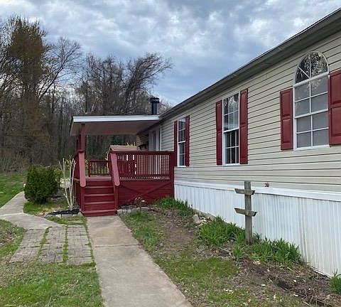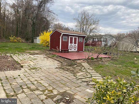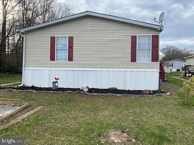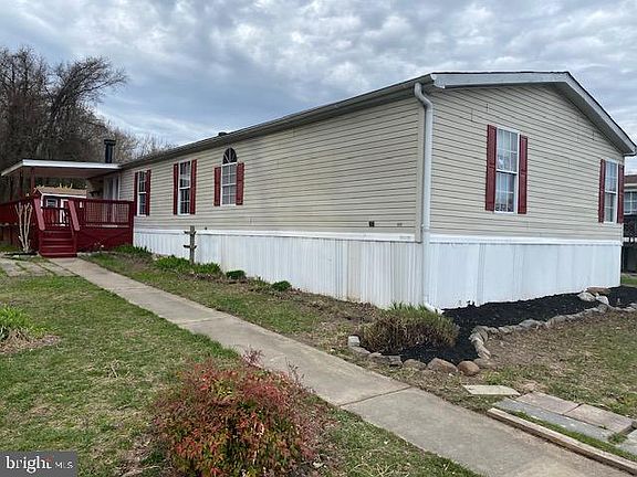 Welcome to a home ready to move in. This beautifully renovated three bedroom, two full bath doublewide has been freshly painted . New carpet in living room and family room with open floor plan. As you enter the home, there is a family room with a stone wood-burning fireplace with marble hearth area. Spacious kitchen has wood cabinets, refrigerator, dishwasher, flat top stove and laminate flooring. Separate dining room with built-ins with an area for a pellet stove or wood burning stove. Primary bedroom has cozy claw foot soaking tub, brand new stand up ceramic shower and dual vanity. A freshly painted covered deck. Tree-lined yard on a very large corner level lot. Private driveway for two cars. Shed for storage and patio out back. Buyers must be approved by the park. Conveniency/ to route 40, Proving Grounds, I-95 and lots of shopping. Come and see!!!! Call agent for more details.PRICE REDUCED $75000 OPEN APRIL 7/2024 1-3 HURRY WONT LAST!!!!!!