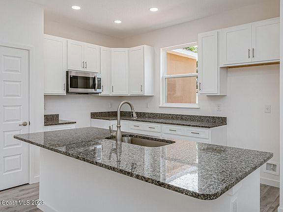 Custom built home in NE Palm Bay with city water and sewer. This home offers an awesome open floorplan with kitchen and family room overlooking back patio and yard. Owner suite includes large walk-in closet and spacious shower. Front bonus room could be your 4th bedroom, office or whatever best fits your needs. Inside laundry is just off 2-car garage. Additional features include granite countertops, luxury flooring, tray ceilings, covered back patio and hurricane shutters. Conveniently located close to shopping, restaurants, downtown Melbourne and I-95. Just built, be the first owner and easily make it exactly what you want through your own personal touch.