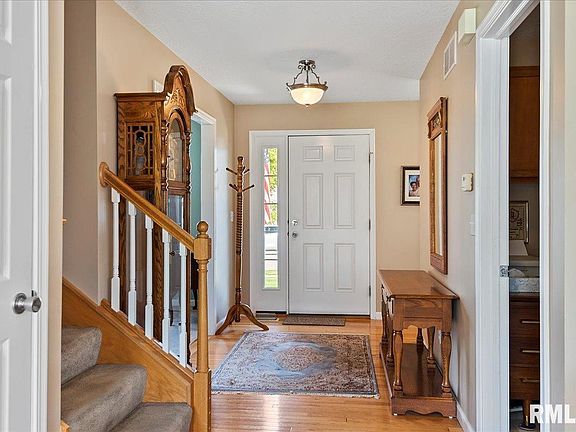 Wonderful 5-bedroom, 3.5-bathroom home located in Deer Ridge Subdivision within walking distance to the park and just minutes from Rt. 24. The main level includes a large living room with a gas fireplace, an informal dining area, and a kitchen with an abundance of cabinetry. A formal dining room provides an elegant space for more formal gatherings. The spacious primary bedroom/bathroom suite on the upper level offers nice closet space. Three additional bedrooms and a shared bathroom are also found upstairs. The full basement is finished offering a family room, bedroom with egress window and full bathroom. There are washer and dryer hookups on both the main level (currently being used as a home office) and in the lower level. New A/C and roof were installed in June of 2023. Come take a look at this great home today!