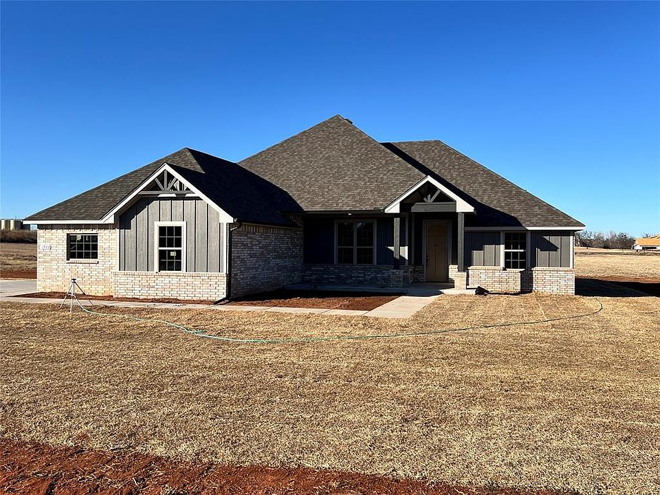 Welcome to the NEW VALLEY RANCH ADDITION!!! Blanchard's newest up and coming neighborhood that delivers the quiet, country living, but within minutes to town amenities. With paved roads, a neighborhood pond, and METAL SHOPS allowed...what's not to love!? This home is nestled in the back of the neighborhood on a corner lot. Inside you will find an open layout for entertaining. Home offers 3 or 4 bedrooms including the large office with closet space. The kitchen boasts quartz countertops, an island, lots of built-ins, and an AMAZING Butler's pantry. The primary walk-in closet opens up to the laundry room and has floor to ceiling hanging space for easy, seasonal rotation. Situated just inside the garage entry door is a beautiful mud room to kick off all those items as you enter the home! The beautiful mantle that surrounds the fireplace is every decorator's dream! The STORAGE....this home has storage closets and linen cabinets everywhere! Outside you will find a large cover patio to enjoy your evenings outside. The front has a beautiful covered porch for greeting guests along with great landscaping space! The home has a private well and aerobic septic system as well as blown in insulation for more energy efficiency.