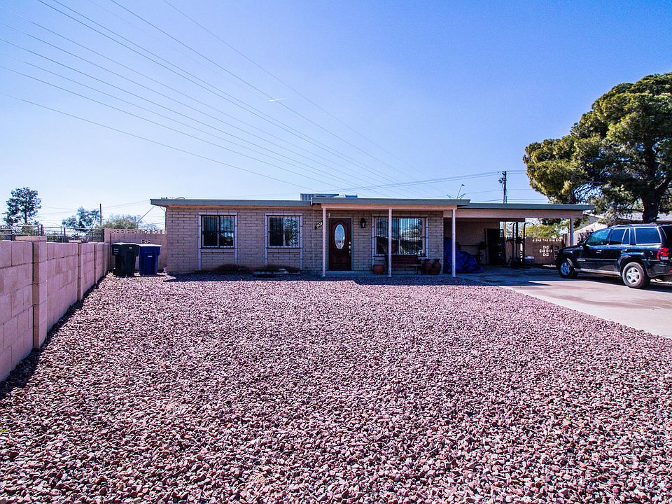 This 3bd/2ba property is situated on a private .30 acre lot & is completely surrounded with a large block wall and security gate at front. This home has been recently updated. New kitchen cabinets with granite counter tops and matching black appliances. Updated bathrooms with new shower surronds. Updgraded dual pane low E windows and upgraded sliding glass door. Interior features rounded corners, tile throughout home and carpet in bedrooms. Covered front patio and back porch plus 2 car- covered carport. This home is conveniently located close to shopping and schools! Sunnyside High School & park is walking distance away. I-10 on ramp, Pima CC Desert Vista Campus & Kino Sports Complex is a 5 min drive, U of A is only 10 min awa