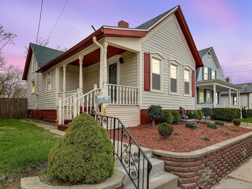 Move right into this tidy 3 bedroom north side bungalow! Bright and sharp living room offers a tile floor that is easy to care for and leads to a nice eat-in kitchen boasting high-def counters, tile back splash, and new stainless steel appliances included. Full bath on main showcases a tiled tub tub surround and a modern look. Spacious and versatile upper level features space that can be used one large bedroom or a bedroom with a large walk-in closet and a den/office area or even a fourth walk-through bedroom! Interior has been freshly painted, the bedrooms have new carpeting, the front porch sports fresh paint, new storm doors are in place, and the water heater is brand new. A deck overlooks the backyard and detached garage. This house is ready for you to make it your home, see today!