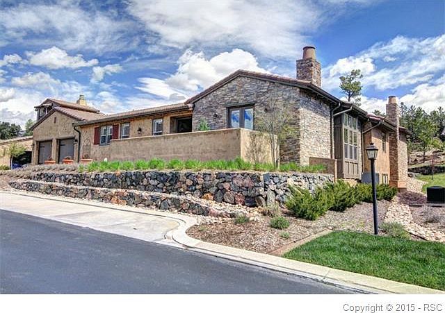 Luxurious, Maintenance-Free, Main-Level Living With Private Backyard Backing Into The Bluff! Indoor/Outdoor Living Areas Flow Seamlessly Together In This Stunning La Bellezza Home Nestled In The Peregrine Bluffs With Views Of The Mountains And Hoodoo Rock Formations. Six Sets Of French Doors Open To The 3 Cobblestone Patios - Including Enclosed Tuscan-Style Courtyard With Firepit - Perfect For Entertaining Or Enjoying The Colorado Quiet. This Home Boasts Deluxe Finishes Throughout - Granite Countertops On The Massive Center Island In The Gourmet Kitchen, Welcoming Great Room With Gorgeous Fireplace And Stunning Beamed Ceilings, Main-Level Study With Fireplace And Walk-Out To Front Cobblestone Patio, Main-Level Laundry And Oversized 2-Car Garage. The Main-Level Master With Adjoining 5-Piece Bath, Featuring Oversized Shower And Enormous Soaking Tub, Also Walks-Out To The Center Courtyard. The Finished Basement Features 2 Additional Bedrooms, Both With Walk-In Closets And Adjoining Full Bathrooms, As Well As Large Family Room With Full Wet Bar And Built-In Wine Rack. This Outstanding Property Is Located In The Desirable La Bellezza Community Close To Award-Winning D-20 Schools, Neighborhood Parks, Hiking And Biking Trails, And With Close Proximity To I-25 For Easy Access to Denver And Downtown Colorado Springs, Shopping, Dining, And All Area Attractions. Put This Home On Your Must-See List Today!