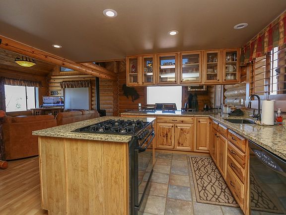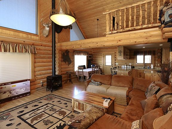 Beautifully done log house in very private location. Irrigated pasture, set up for horses, in floor heat, plus a gas stove, vaulted ceilings and wood floors, kitchen with granite and tile, large loft, family room. Very warm and cozy feel.