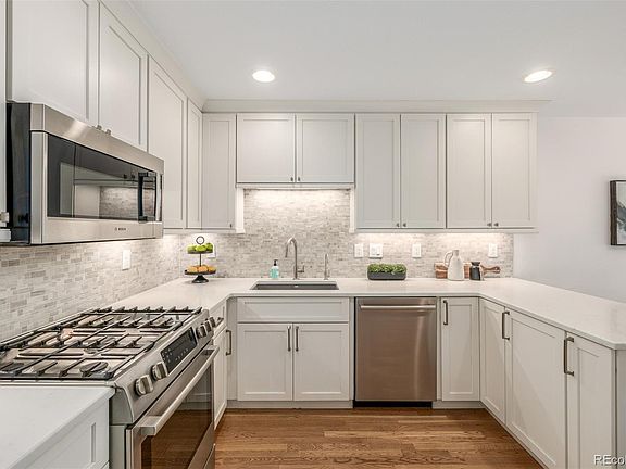 - Description: Stainless Steel Appliances, Tile Backsplash, White Cabinets, Quartz Counters