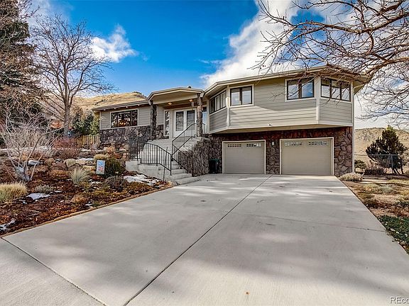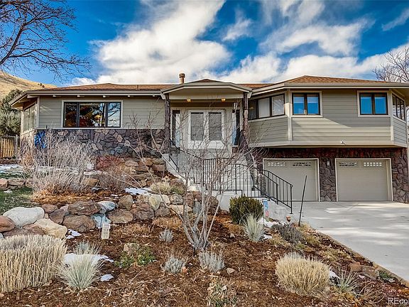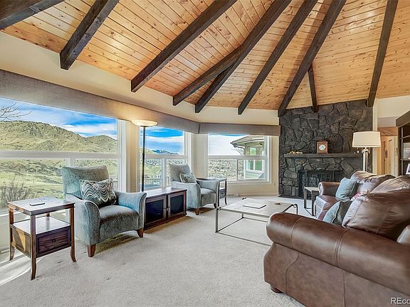 This one-of-a-kind custom home is composed to two octagons, so the major rooms are not square and benefit from multiple walls with windows, especially on the back facing Chimney Gulch and Mt. Zion, with views of downtown Golden, the Colorado School of Mines campus and North Table Mountain. This is absolutely one of the premier homes in Beverly Heights! The backyard, with its 19.5' octagonal TimberTech composite deck echoing the home's design, is beautifully landscaped, taking full advantage of the amazing mountain and city views. The front yard is beautifully xeriscaped. The finished and insulated 4-car tandem garage measures 980 sq. ft. The roof has GAF Armorshield II, Class 4 Impact shingles. This home is going to attract a LOT of interest, so act quickly if you don't want to miss out! Click on the virtual tour icon or visit http://BeverlyHeightsHome.com to take a narrated video tour of this home.