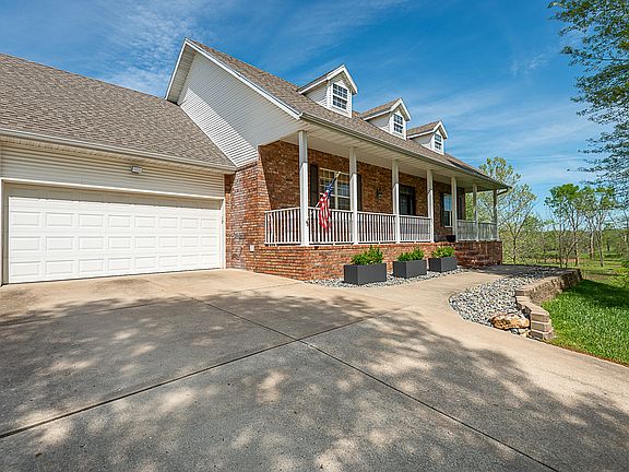 Fantastic north Nixa location on 2.77 acres! This 4 bedroom, 3 bath walkout basement home has something for everyone! With over 4,000 square feet you can let your imagination run wild on how to use all the space. The main level boasts a split bedroom plan, a nice great room with a gas fireplace and built-in shelves, a large kitchen with stainless appliances (fridge stays), granite counters, center island, a walk-in pantry plus a formal dining room with hardwood floors. The walkout has an expansive family room complete with a wet bar/kitchenette, an office, the 4th bedroom, another full bath, laundry room with a stainless utility sink, a workout room plus a large storage area! The bonus is the 5 car garage! The recently added 3 bay garage is 28' deep, has upgraded lighting plus it is heated & cooled with a mini-split system. The doors are automatic with jack lifts and one bay has a drive through section. It's the ultimate work shop, boat storage or game room, you name it! Save money with the new energy efficient Trane heat pump, furnace and air mover. Some updating has been completed including new primary bedroom carpet, some new windows in the basement, new gravel circle drive, lush landscape, gutter screens, new plumbing under the sinks, a new stainless utility sink in the laundry and much more! Outside is a lovely covered front porch, a partially covered back deck, stairs and a large patio below. All of this in a convenient location on 2.77 green acres!