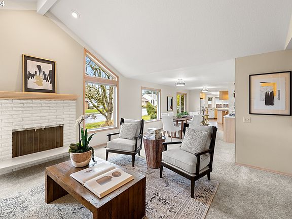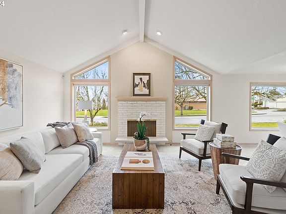 Open House Sat March 2nd from noon-3 pm. Welcome to your dream one-level home in the desirable 55+ community of Summerplace with a corner cul-de-sac location. This Englewood floor plan boasts 3 bedrooms and 2 bathrooms, providing comfort and convenience. A hardwood entry awaits leading to the spacious living room with vaulted ceilings, soaring picture windows and a comfortable gas fireplace, perfect for relaxing evenings. Entertain in style in the dining room, adorned with custom features, while the family room offers a bonus fireplace and a gorgeous built-in, perfect for books and photos. The kitchen is a culinary delight, featuring a built-in microwave, double oven, dishwasher, and gas cooktop. A free-standing refrigerator completes this chef's haven. Retreat to the primary bedroom suite with its walk-in shower and jetted tub. You will love the double closet, providing ample storage. The indoor laundry room and sink add convenience to your daily routine. Step outside to the covered patio, fenced yard with sprinklers, perfect for enjoying the outdoors in any weather. This is one of Summerplace's most sought after floor-plans measuring approximately 2,045 sq ft. Experience the best of 55+ living where community amenities include a clubhouse, swimming pool, pickleball courts, library, exercise rooms. Don't miss the chance to make this beautifully designed home yours! [Home Energy Score = 4. HES Report at https://rpt.greenbuildingregistry.com/hes/OR10225142]