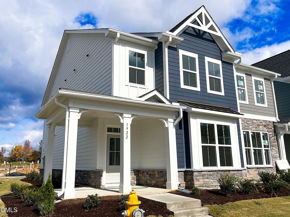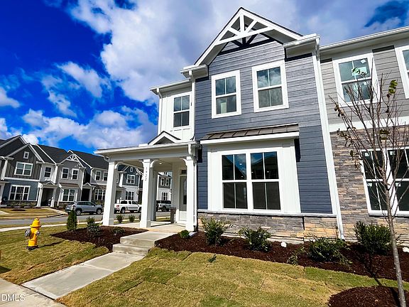 Brand New End Unit is ready for move in! his end unit Lennox townhome features 3 bedrooms, 2.5 bathrooms, a 1-car rear garage, and plenty of flexible living space on two levels. Throughout the home, you'll find upgraded door hardware and a upgraded Artisan interior trim package. Outside, the curb appeal is enhanced by an exterior stone watertable and wrap-around front porch. As you step inside, a bright, open floor plan greets you. The family room and dining room flow into a central kitchen, which features a large island with a seating bar and a spacious pantry. The kitchen is beautifully appointed with upgraded Carrara Morro quartz countertops, white perimeter cabinets with Champagne Bronze hardware, and a spacious island. The main level also includes a versatile den, perfect for a home office or extra living space. Take the oak stairs to the second level. The large primary suite is a true retreat, featuring an additional window and an en suite bath with a walk-in closet. The primary bathroom boasts upgraded lighting, Blanco Maple quartz countertops, sleek white cabinets with Champagne Bronze hardware, and upgraded bath fixtures. Two additional bedrooms, another full bathroom, and a conveniently located laundry room complete the upper level. Low-maintenance living is at its finest with the Lennox, and with an ideal location, homeowners can spend their days enjoying the incredible amenities and lifestyle offered at Wendell Falls which includes onsite shopping, dining, clubhouse, pools, playgrounds, trails and so much more! Ask about the special financing options available!