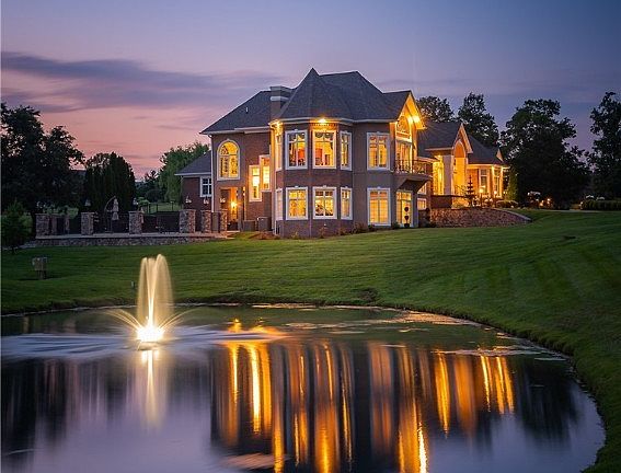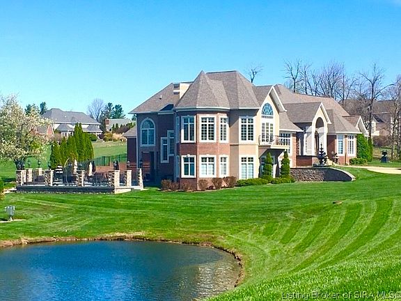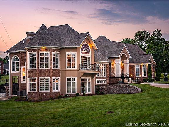 Architectural one of a kind 5 CAR, 6 BED, 4.5 BATH designed home w/sweeping views of the skyline & downtown Louisville, as featured on Louisville’s Best Homes. Built on a prime $200,000 lot, w/ lakefront access; engineers foundation & plat plans. 9,424 SF ($154 per SF) with 7,800 SF ($186 per SF) finished home was uniquely crafted to be constructed from foundation, having no basement except 1 full room with poured concrete walls allowing floor to ceiling windows & doors at ground level by Armstrong Architects. $287,000 addition & remodel completed in 2010. The Great Rm features a suspended ceiling farthest most point being 19 ft 6” to watch the moon, stars & horizon encompassing 4 counties, Ohio River & Bridges, downtown Galt House, & Humana Bldg. Andersen windows custom designed 20ft, 10ft, tempered glass. Marble, granite inlays, hardwood, & LVP flooring. Wood coiffured, cathedral, & vaulted ceilings. Kitchen, Great Rm, Breakfast & Sunroom open for easy entertaining. Dining w/4ft buffet & art display houses electric for buffets, marble counter, while mirrors soar sides & back w/ bracketless seams. 8 TVs, 8 Refrigerators, 1 wine fridge, + ice maker. Café SS Appliances in main kitchen. 1 gas range/2 ovens, 1 wall oven, 3 microwaves, 2 dishwashers, 2 washers, 3 dryers. The sunroom, baking & pantry has 4 palladium windows from floor to ceiling overlooking an expansive pool area; cabinetry, & marble from northern Italy. 1 owner is an IN licensed RE Broker. More in agents remarks.