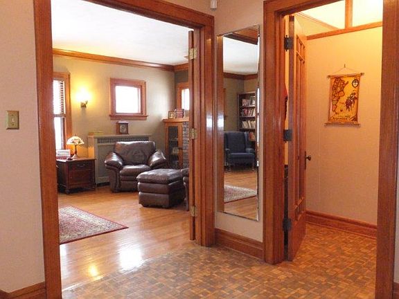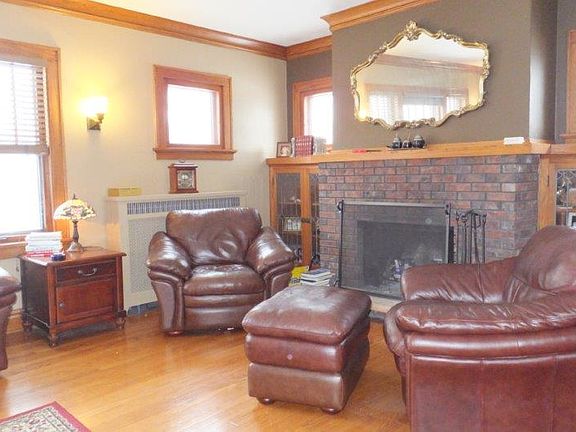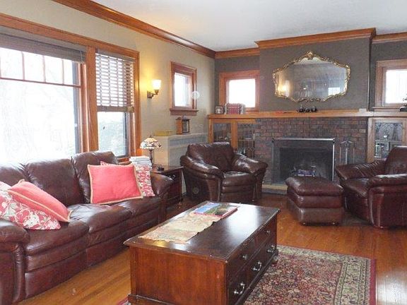 Beautifully cared for three story Prairie/Craftsman brick home has charm, character & great updates. Lot's of square footage & the layout flows. Four bedrooms on the 2nd flr and three bedrms on the third floor provide great office space/guest bdrms. Main floor living rm w/ wood burning fireplace & classic built in bookshelves, natural woodwork & sun room, new appliances in kitchen, lower level family rm, workshop. Easy turn around in driveway & 2 car garage w/ extra storage. Extra large/deep lot.