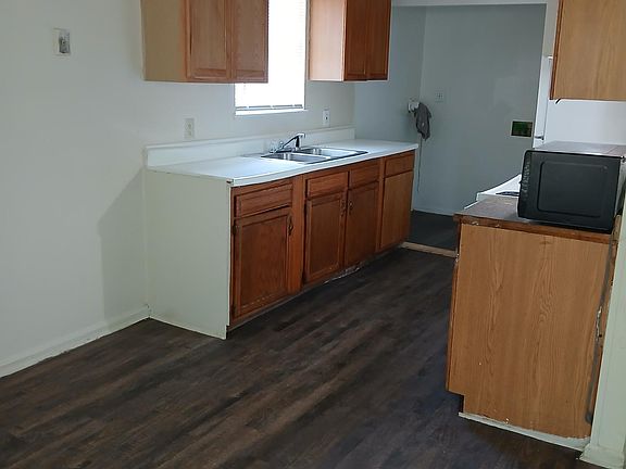 3BR, 1 bath home with carpet and vinyl flooring. Also includes a stove, fridge, central AC, W/D hookups, ceiling fans, vaulted ceilings, a fenced-in yard, basement, a large front porch, 2-spot detached garage, and driveway parking. none