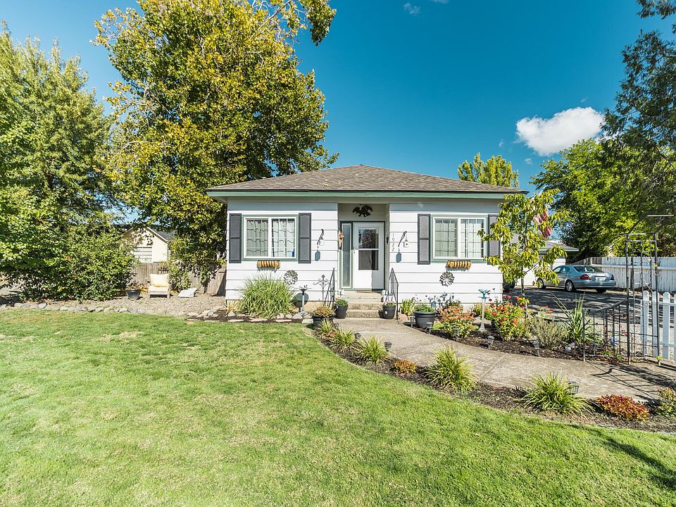 You won't want to miss out on this Vintage Bungalow with plenty of mid-century charm!This home is 3 bedrooms plus a studio/office, meticulously maintained, super clean and all fenced & landscaped with raised garden beds with trellis for easy picking your veggies, and fruit trees. Detached double garage. Fully fenced with gate. This home is turn key and in a super location, close to schools, fire dept, and lots of activities in desirable Central Point.