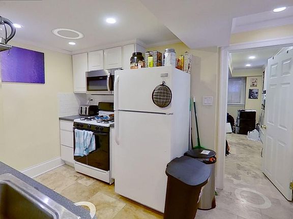 Spacious, renovated two bedroom, two bath. New kitchen with eating bar, 2 new marble baths, and stone floors throughout. D/w, g/d, & w/d. Unit is window AC and baseboard heat