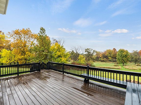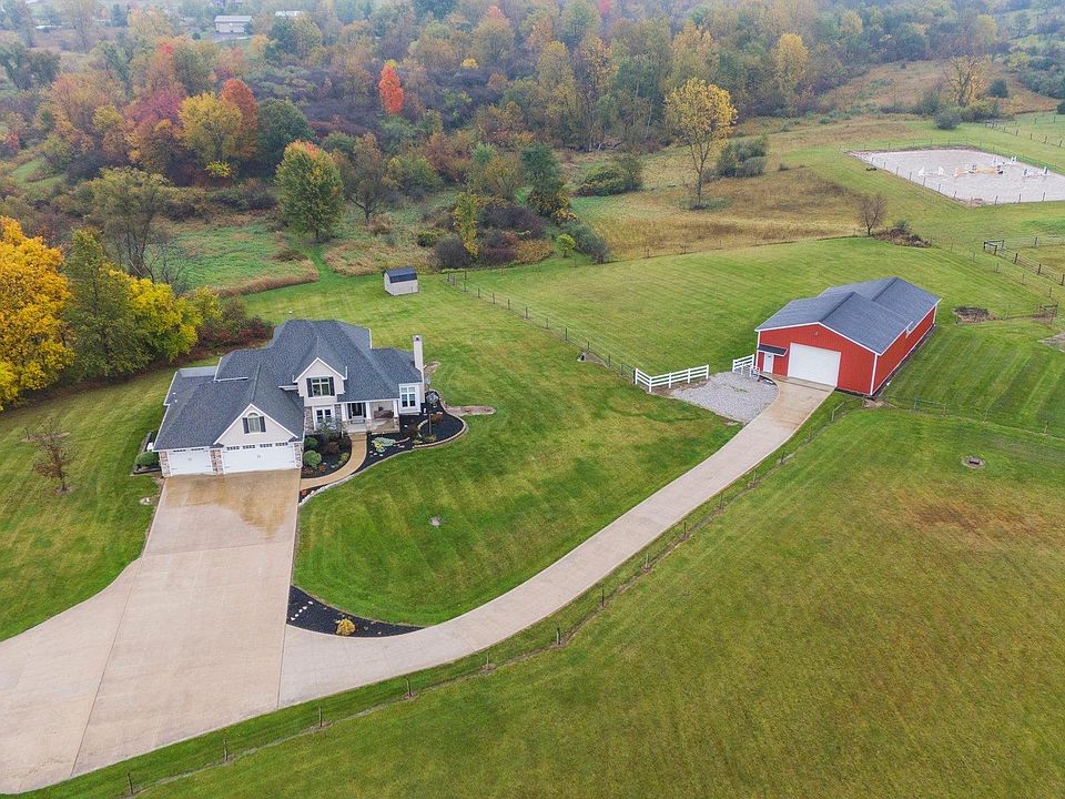 Are you looking for a meticulously maintained countryside house with acreage, must have amenities all on one level, a pole barn and a scenic natural backdrop? Make this four bedroom, four and a half bath place your next home! Step through the front door into the two story foyer and let the natural light and cozy fireplace draw you into the living room. Make your way around the corner into the breakfast room and kitchen where you will find custom Dutch Made cabinetry with dovetail drawers, stone counter tops, loads of cabinet storage and a convenient center island. Proceed down the hall through the mudroom area and take note of the nice size dedicated laundry room and the massive walk-in pantry! The main floor primary bedroom suite is tucked away for privacy and can easily accommodate a king sized bedroom set and sitting area. The on-suite bathroom has a double sink vanity, soaking tub and a large step in shower. The on-suite closet is also extra large with a high quality custom clothes organizer system. Make your way past the functional dining room and head upstairs will you will find a second full bedroom suite with attached deluxe bathroom and walk-in closet! Third bedroom has vaulted ceiling with nice sized closet. Fourth bedroom has an extra bonus room area with convenient access to attic storage! In the lower level walk-out basement you will find a family room, wet bar area and a secluded den or executive office. The pole barn has a partially finished shop area with fourteen foot ceilings. The tack area, livestock stalls and pasture fencing make this the perfect place for horses or a hobby farm! Two sheds can be used for lawn storage, hobbies or as a backyard playhouse! Home has AO Smith tankless water heater, Kinetico softener, Generac whole home generator, and underground pet fence. Updates include well insulated garage doors, some new windows and new gutters. Mechanicals are regularly serviced by Gibson’s! Located in the award winning Leo Schools in Allen County just a few minutes north of Leo! Priced to sell at $675,000!