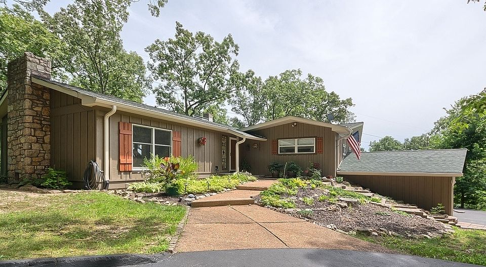 Uniquely styled and surrounded by tall tress and woods, this home is completely private located on 3 acres. Walk in the front door to the huge open family room with a fireplace and stone surround quarried from Rockwood Reservation. Completely updated kitchen open to the family room and dining room with solid surface countertops and SS appliances. Brand new flooring in the master bedroom, completed suite with updated master bath. Railing to the basement was salvaged from an old St. Louis City home. Completely finished walk-out basement with plenty of entertaining room, storage, and 2 more sleeping rooms. Brand new back patio.