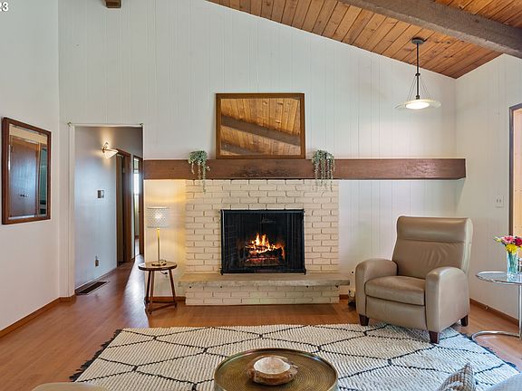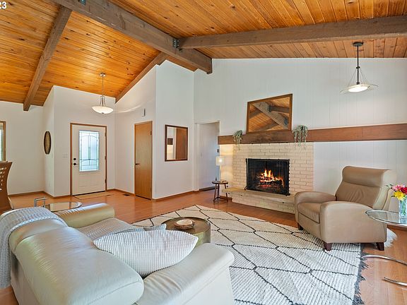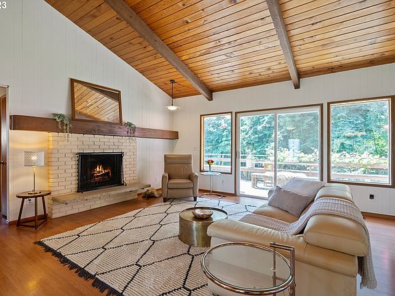 INCREDIBLE $110,000 PRICE DROP! Lovingly built Mid Century on almost 2 acres in the heart of Sherwood. This home has soaring ceilings that will inspire. Plenty of room for all your loved ones to gather. Entertainers dream with the open concept kitchen and beautiful outdoor grounds for croquet,volleyball, fire pit, BBQ, and gardening! Set up that pool & stay cool next to this enchanted forest. Opportunity for multigenerational living w/partially finished basement & separate ground level entrance + full bath. New furnace '23, roof in 2016. Spectacular view of Mt. Hood on clear days!LA related to seller.