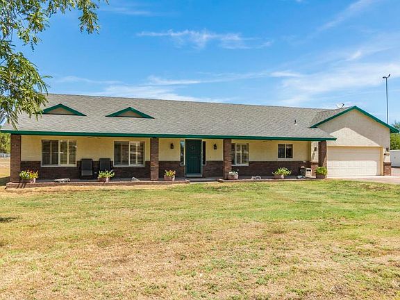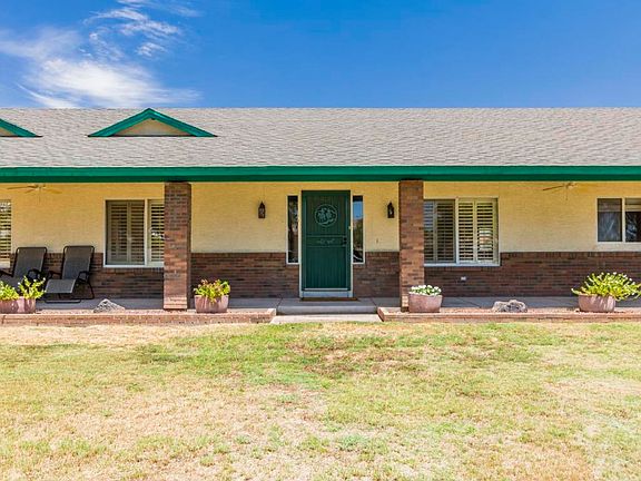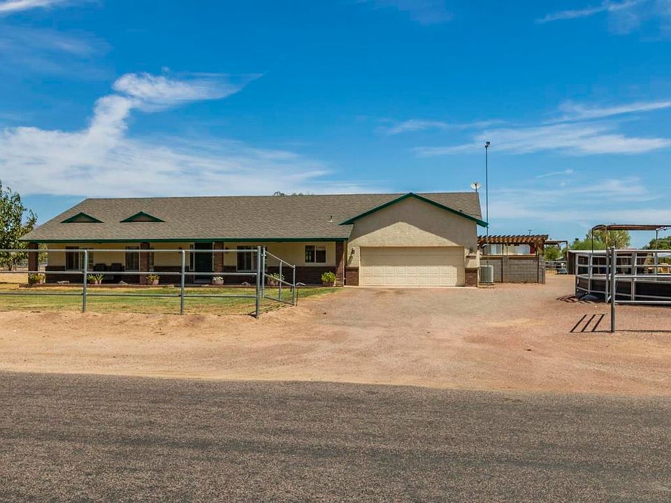 Here it is- beautiful horse property with irrigation rights and all the upgrades you've been looking for! This one-of-a-kind listing has everything you need, just move in your horses. Property includes six partially lighted horse stalls, large round pen with flood light for night riding, wash rack and tack room for all your gear. RV power hookup also available on site. Inside the home you'll find an extended garage with a dedicated 220 volt outlet for your large machinery along with wall to wall built in storage cabinets. The 1.36 acre perimeter of the property is also prewired with an invisible fence for your other 4-legged friends.Inside this home you'll continue to be impressed with pride of ownership. Featuring granite countertops, designer backsplash and open floor plan with vau