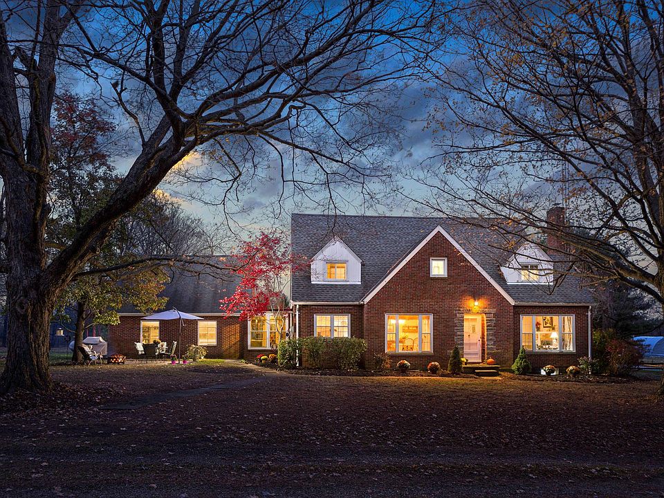 Spacious, Inviting Brick Cape Cod. Looking for a place to: raise a family, start a business, hunt, fish, camp, farm or simply enjoy nature look no further. HOME offers 5 beds / 2 baths, hardwood floors, full basement, fully applianced custom kitchen, hand crafted maple cabinets and granite counters. A separate income producing / in-law suite is conveniently located above the attached 2 car garage. PROPERTY offers 15.3 acres & 1 acre pond. Mature woodlot of Norway spruce and Canadian hemlock trees borders rear of property. Mature fruit, maple, sycamore, red bud, and ornamental trees throughout the property. OUTBUILDINGS include a 24 x 32 heated workshop with attached screened-in patio, Easy Commute to Columbus. Road frontage, 600' is zoned commercial. Bank barn in photos has been removed.