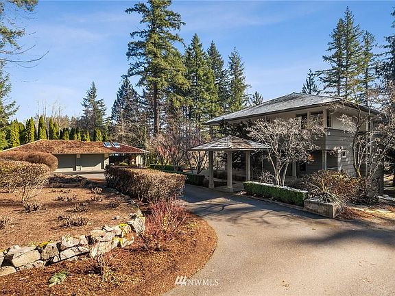 Welcome Home to this one-of-a-kind, Frank Lloyd Wright inspired Estate. This awe-inspiring home sits on 1.3 acres and features 4059sq ft. with 3 bedrooms, 3.75 baths, a 3000sq ft. shop and an additional 3 car garage. Gorgeously updated kitchen features top of the line appliances, quartz counters and a walnut bar that blends beautifully with the grey cabinetry. Stunning primary bath features a gorgeous tile surround shower, elegant soaking tub, heated floors and under cabinet lighting. Large shop is perfect for a home-based business or woodworker that includes 2 office spaces and a half bathroom. Summer nights await gathered around the outdoor kitchen while making pizzas in the brick pizza oven that was imported from Italy. Tahoma schools!